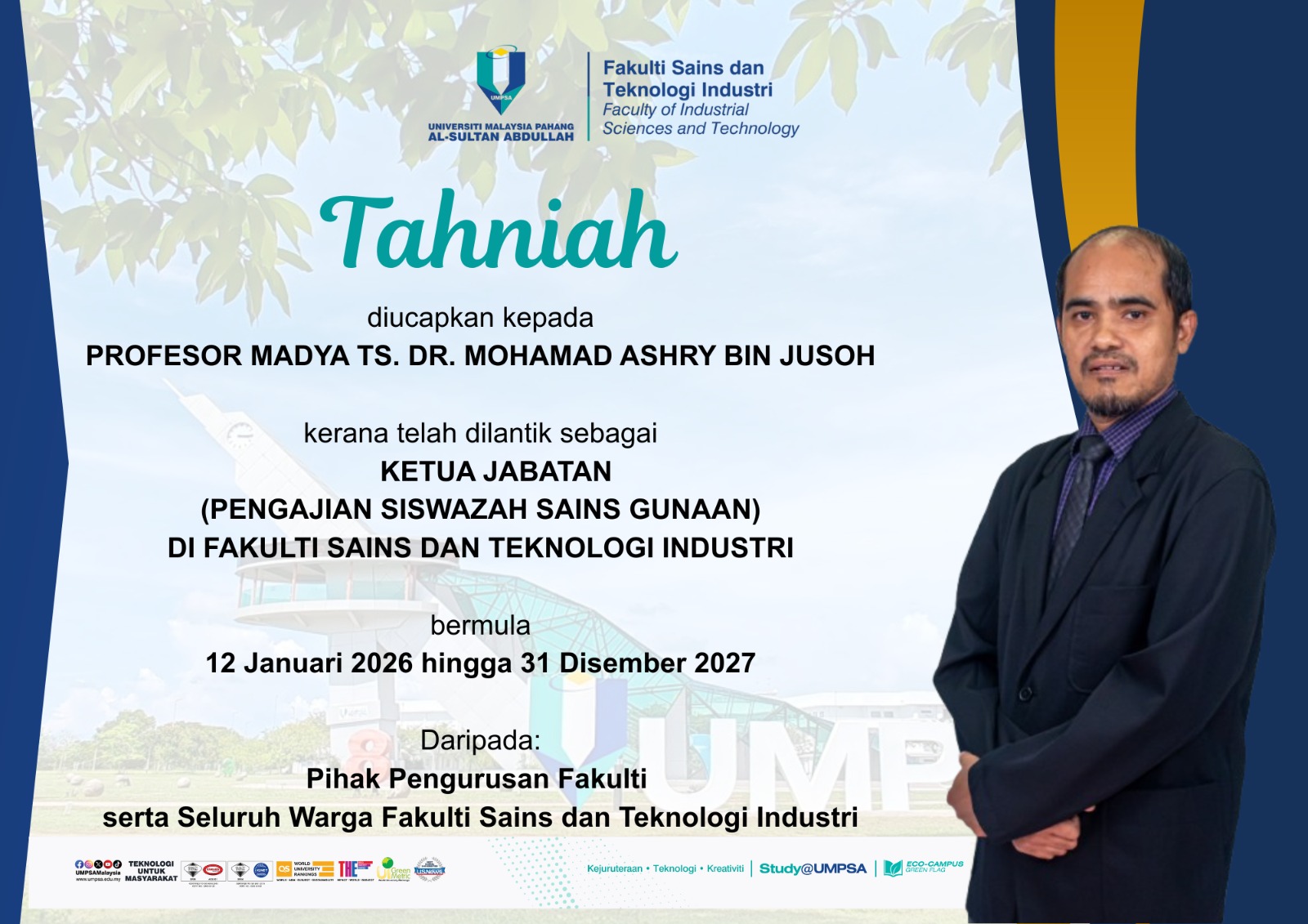 Welcome to the Faculty of Industrial Sciences and Technology (FSTI) at UMPSA, Kampus Gambang. Thank you for visiting our website.