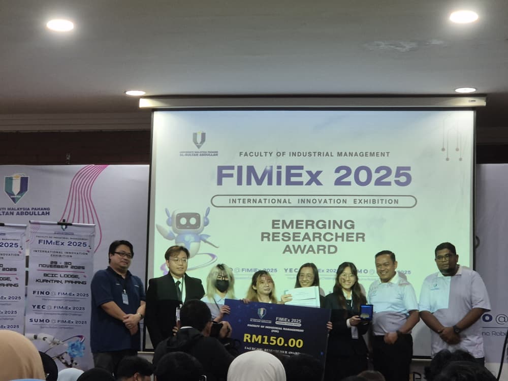 Syabas dan Tahniah diucapkan kepada pelajar tahun akhir Fakulti Sains dan Teknologi Industri (FSTI) atas kejayaan merangkul Emerging Researcher Award dalam kategori FIM Innovation di Faculty Industrial Management Innovation Exhibition (FIMiEx2025) yang berlangsung pada hari ini di BCIC Lodge Hotel, Kuantan, Pahang!
