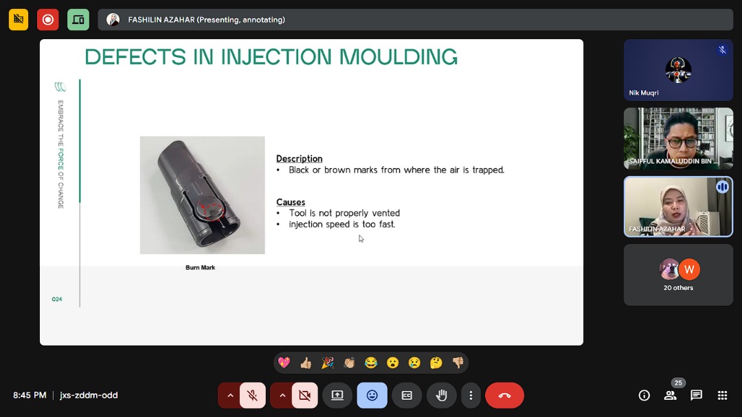 The talk highlighted common defects such as warpage, sink marks and short shots, alongside systematic root cause analysis on the machines. Ms Nor Fashilin described how engineers adjust process parameters and consult historical data to stabilise production and reduce rejection rates. She also demonstrated the use of simple dashboards and monitoring systems to track cycle time, scrap trends and machine efficiency. These examples illustrated the growing role of Industry 4.0 tools in supporting materials and process decisions.