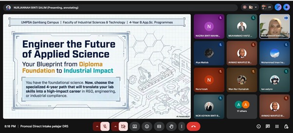 Fakulti Sains dan Teknologi Industri (FSTI) telah menganjurkan satu Sesi Taklimat Promosi ‘Direct Intake’ kepada pelajar Diploma Reka Bentuk Sistem (DRS) pada 6 April 2026. Sesi ini melibatkan seramai 25 orang pelajar DRS yang sedang menjalani latihan industri.
