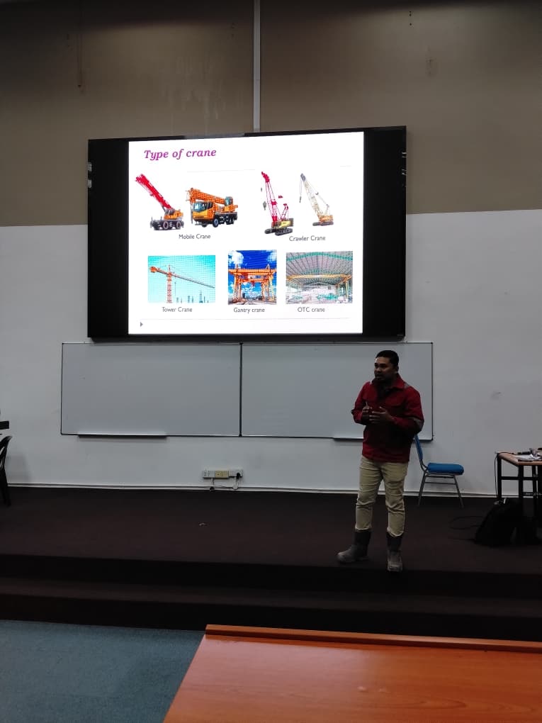 The co-lecture focused on key aspects of lifting and rigging safety, including hazard identification, proper equipment handling, and compliance with safety procedures. The session was further enhanced with real-life videos and case-based discussions, enabling students to better understand the consequences of unsafe practices.