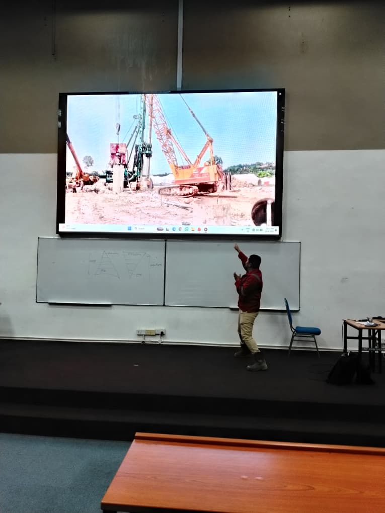 The invited speaker, Mr. Mohamad Nazlemin bin Mat Hassan, HSE Manager from China Communications Construction Company, shared valuable insights based on his extensive experience in large-scale infrastructure projects. His session provided students with direct exposure to real-world safety practices in construction environments.